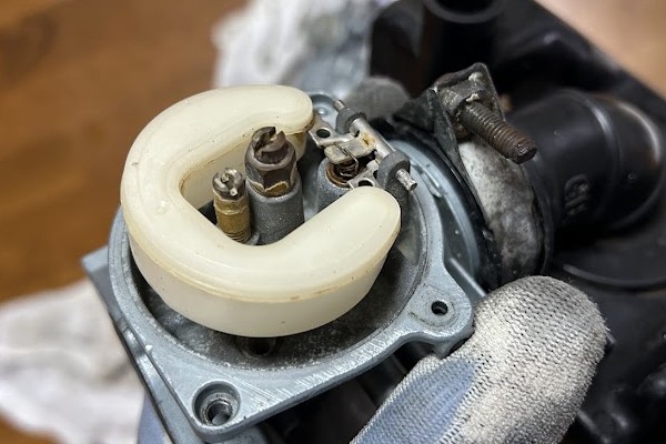 とりあえず、ジェットをはじめ諸々の部分をきれいにする努力はしてみました。フロートセット(フロートバルブ)の部分の感触がイマイチ...