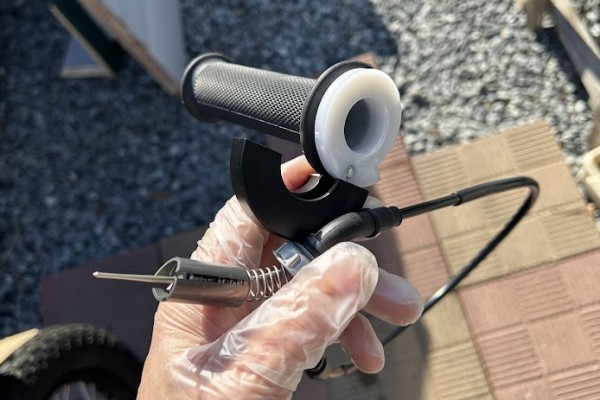付属のスロットルケーブルをスロットルグリップとスロットルバルブに取付けて
