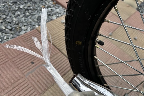 情報量はゼロ。でも、あまりの嬉しさにシャッターを切っていました。自分の記録用に撮った、排気になびくビニール紐の写真です。ついに、このカブが息を吹き返したんだと実感した瞬間でした。