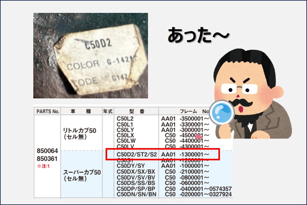 選定間違えのないように型番とフレームナンバーを確かめ、パーツナンバーを検索して購入です。